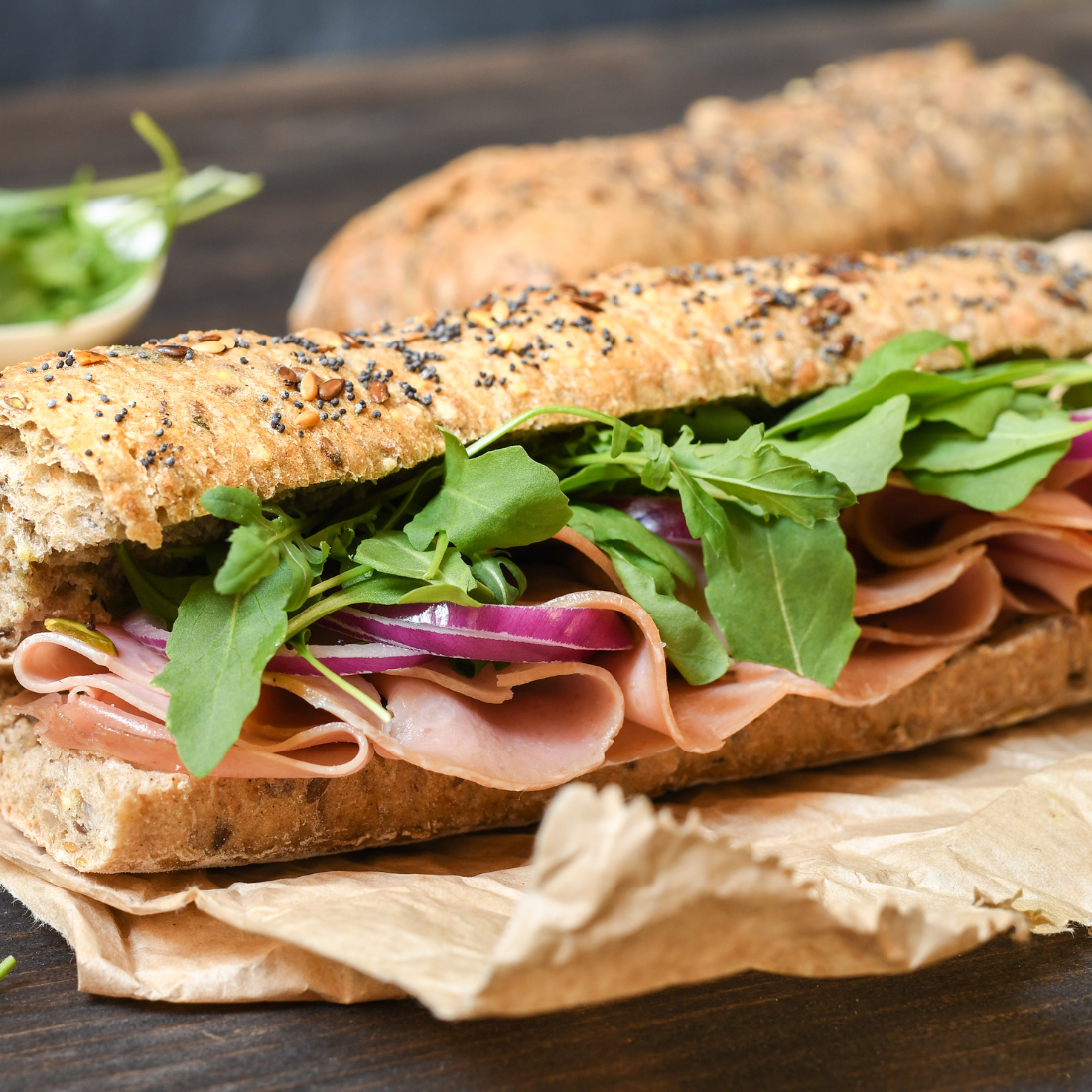 Sandwiches fríos o calientes en pan de miga, frances, árabe, integral o con semillas.